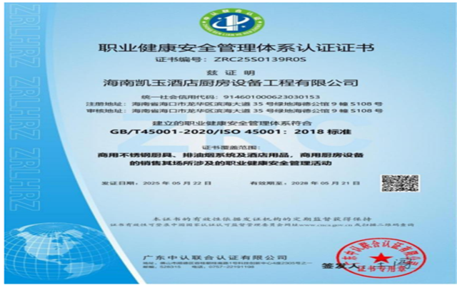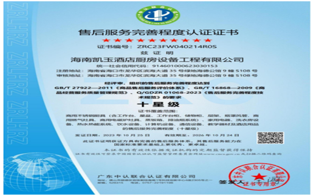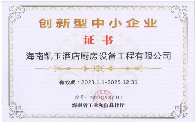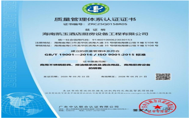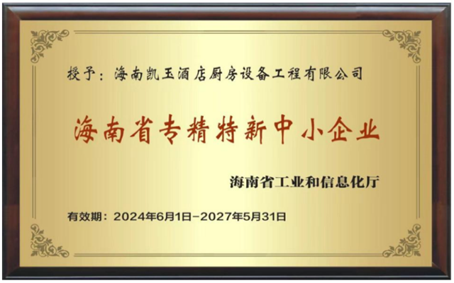 海南凱玉酒店廚房設(shè)備工程有限公司(以下簡稱凱玉廚具或我司)成立于2013年,注冊資金2800萬,地處海南省海口市。歷經(jīng)多年發(fā)展,已在海南股權(quán)交易中心上市,是海南省行業(yè)中率先獲得十星級售后服務(wù)證書,通過ISO9001:2015質(zhì)量管理體系認(rèn)證、ISO14001:2015環(huán)境管理體系認(rèn)證、GB/T45001-2020職業(yè)健康安全管理體系認(rèn)證、AAA企業(yè)信用等級認(rèn)證、中國安全生產(chǎn)標(biāo)準(zhǔn)化一級企業(yè)認(rèn)證、中國廚房設(shè)備工程行業(yè)一級認(rèn)證、燃氣燃燒器具安裝維修能力一級認(rèn)證、采用國際標(biāo)準(zhǔn)認(rèn)證并由政府部門審查頒發(fā)證書的企業(yè)(詳見專業(yè)資質(zhì)文件),一般納稅人A級信用企業(yè)、海南省酒店與餐飲行業(yè)協(xié)會副會長單位、中國廚具行業(yè)十大品牌、中國著名品牌、2021年度中國國際飯店業(yè)優(yōu)質(zhì)廚房設(shè)備供應(yīng)商推薦品牌、2022年度中國飯店業(yè)高質(zhì)量發(fā)展設(shè)備供應(yīng)商品牌、酒店用品與設(shè)備供應(yīng)商等級認(rèn)證甲級企業(yè)、國家高新技術(shù)企業(yè)、專精特新企業(yè)、海南省專精特新中小企業(yè)證書。