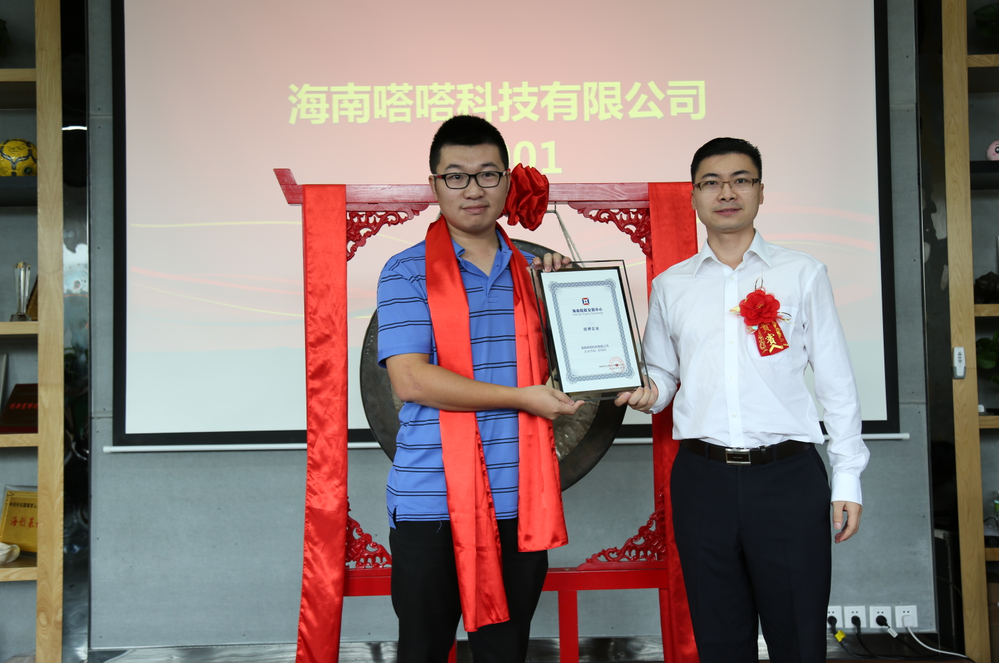 在網絡同步直播中,海南股權交易中心為海南嗒嗒科技有限公司、海南大漆科技有限公司、海南米思林電子商務有限公司、海南互贏信息技術有限公司、海南愛動體育文化傳播有限公司、海南一網一店現代服務管理有限公司、海南萬客食品有限公司、海南艾客同城網絡科技有限公司、海南五二微幫信息科技有限公司、??谕鮽髌鍎勇邢薰?0家企業舉行了掛牌儀式。程棟才、馬亮、鄭心學分別為企業授牌并與企業家合影。