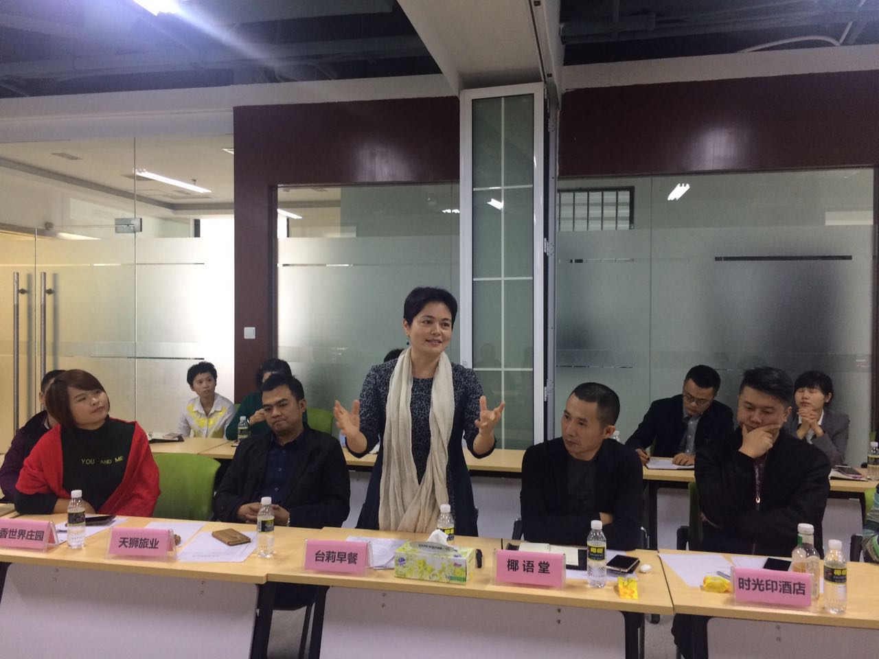 會(huì)上,程棟才就目前海南旅游企業(yè)的發(fā)展現(xiàn)狀及獲得相關(guān)融資的旅游掛牌企業(yè)情況進(jìn)行了介紹,并就“全域旅游”形勢(shì)下企業(yè)如何結(jié)合行業(yè)發(fā)展方向及政策更好地推動(dòng)企業(yè)掛牌交易板,走向新三板及更高層次資本市場(chǎng)進(jìn)行了闡述。隨后,吳麗娟就海南旅游業(yè)現(xiàn)狀和面臨的問題進(jìn)行了分析,并用“智慧、個(gè)性、融合”六個(gè)字進(jìn)行了總結(jié)概括。陳揚(yáng)樂就旅游市場(chǎng)面臨的市場(chǎng)、角色、組織等的轉(zhuǎn)型趨勢(shì)進(jìn)行了深入介紹,并表示愿意與海南旅游企業(yè)開展深入合作,提供人才培養(yǎng)和支持。