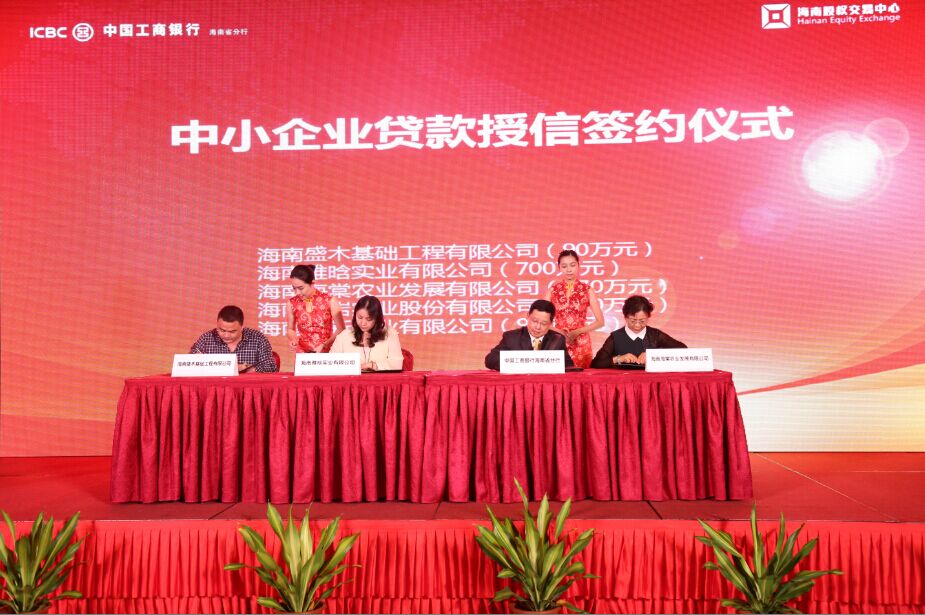 隨后,省工行吳傳武副行長與5家企業(yè)正式簽訂了貸款協(xié)議和授信協(xié)議,在股交中心的撮合之下,省工行一共向5家企業(yè)提供合計2260萬元的貸款和授信。其中,海南立新實業(yè)有限公司獲得900萬元授信,海南雅晗實業(yè)有限公司獲得700萬元貸款,海南仙巖實業(yè)股份有限公司獲得300萬元授信,海南海棠農(nóng)業(yè)發(fā)展有限公司獲得270萬元貸款,海南盛木基礎工程有限公司獲得90萬元貸款。