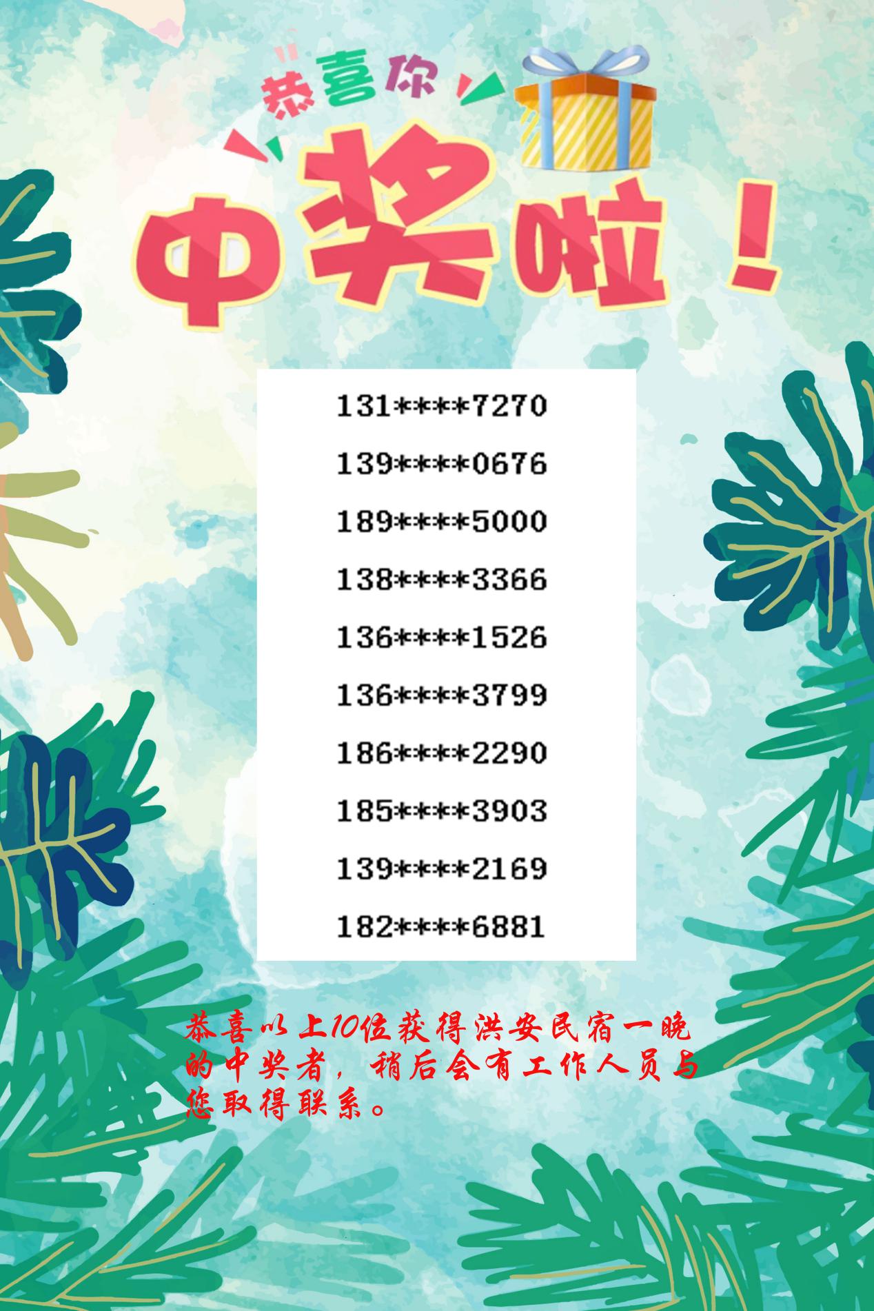 洪安民宿中獎者名單如下: