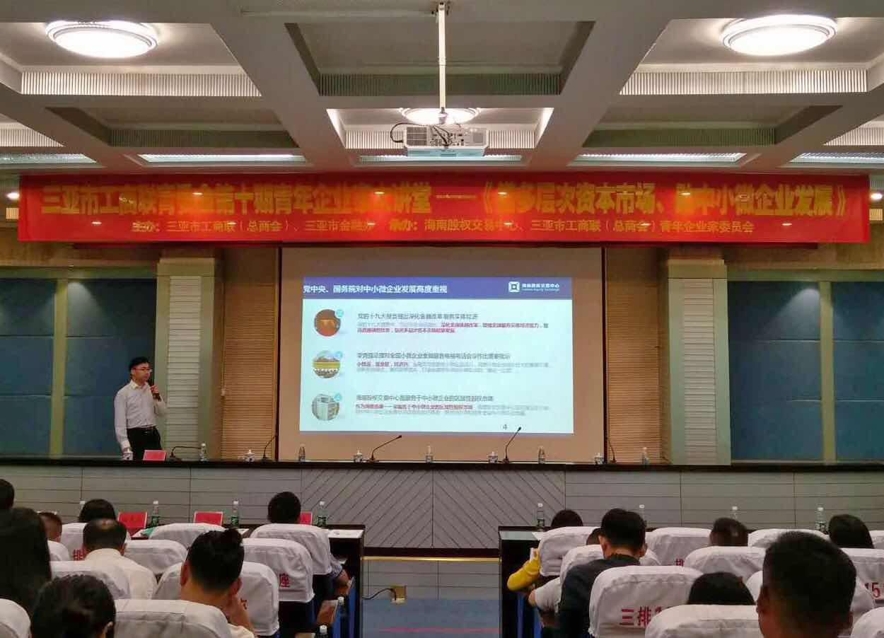 培訓(xùn)過(guò)程中,程棟才執(zhí)行總經(jīng)理以“借助多層次資本市場(chǎng),助力中小微企業(yè)發(fā)展”為主題,為在場(chǎng)企業(yè)介紹了2017年海南省中小微企業(yè)的發(fā)展?fàn)顩r及海南股權(quán)交易中心下一步的發(fā)展目標(biāo),現(xiàn)場(chǎng)分析了目前的十二大重點(diǎn)產(chǎn)業(yè)及三亞“一支柱兩支撐”下政府產(chǎn)業(yè)政策,并就如何企業(yè)有效利用資本市場(chǎng)規(guī)范發(fā)展及如何快速進(jìn)入?yún)^(qū)域性股權(quán)市場(chǎng)展開(kāi)了一系列的講解。