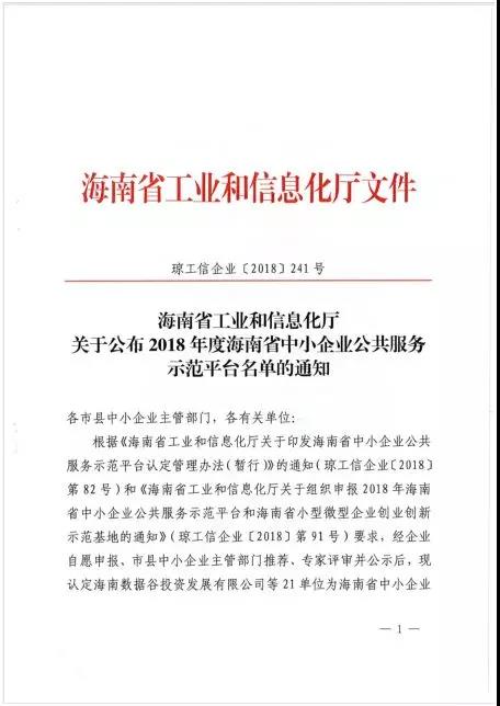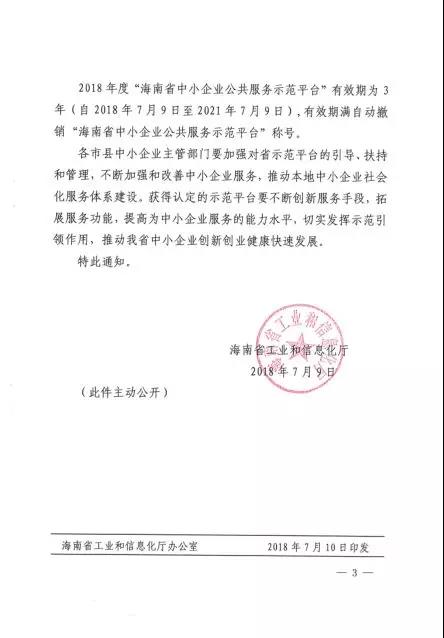 近日,省工信廳正式印發(fā)通知,公布2018年度海南省中小企業(yè)公共服務(wù)示范平臺名單,包括海南股權(quán)交易中心在內(nèi)的21家單位獲得認(rèn)可。
