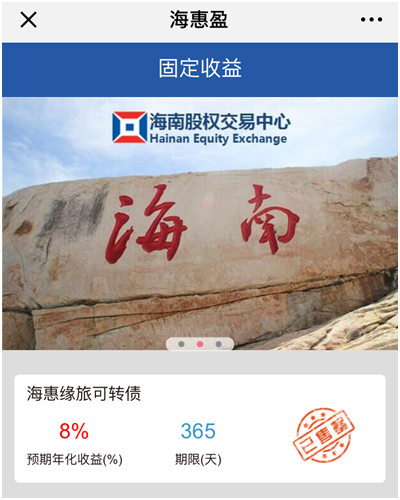 海南股權交易中心“海惠緣旅”可轉債 上線當天募集成功