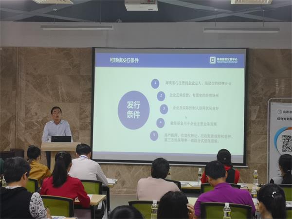 在接下來的培訓(xùn)環(huán)節(jié)中,海股交相關(guān)部門工作人員向到場的企業(yè)負(fù)責(zé)人及高管詳細(xì)介紹了海股交的定位與服務(wù)功能、企業(yè)合規(guī)管理要求以及股權(quán)轉(zhuǎn)讓、定向增資、發(fā)行可轉(zhuǎn)債等方面的內(nèi)容。