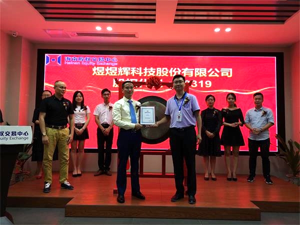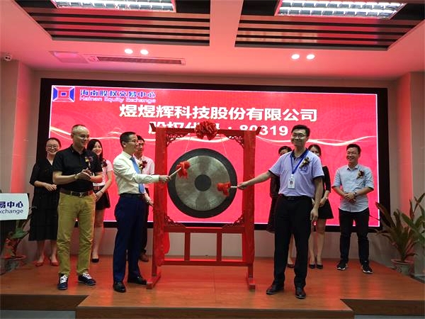 11月19日,海南股交老城軟件園辦公樓內再次響起掛牌的敲鑼聲,在海南股交執行總經理程棟才、海南省中小企業服務中心常務副主任李勇燁以及其他現場嘉賓的見證下,煜煜輝科技股份有限公司(以下簡稱“煜煜輝科技”)正式在海南股交交易板掛牌。