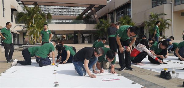 下午還進行了“納斯卡巨畫”活動,大家你一筆,我一畫,不分隊伍、凝心聚力,每個人都是最好的畫師,畫出活力,畫出海南股交的精氣神。通過細致的分工協作,最終完成了一幅10米×6米的巨幅圖畫,攻克了曾經認為不可能完成的項目。