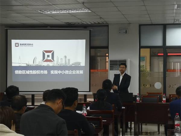 程棟才通過當前經濟形勢的分析,對我國目前多層次資本市場的發展情況以及新三板、區域股權市場給中小微企業帶來哪些發展機遇做了深入淺出地解讀。海南股交機構合作部負責人對海南股交運營情況等內容作了詳細的匯報,并且重點就海南股交三大板塊建設、?;萦脚_、可轉債業務以及如何服務中小微企業的孵化培育,承接地方金融支持實體經濟功能為中小企業解決融資難,融資貴問題等方面進行了詳細的介紹。