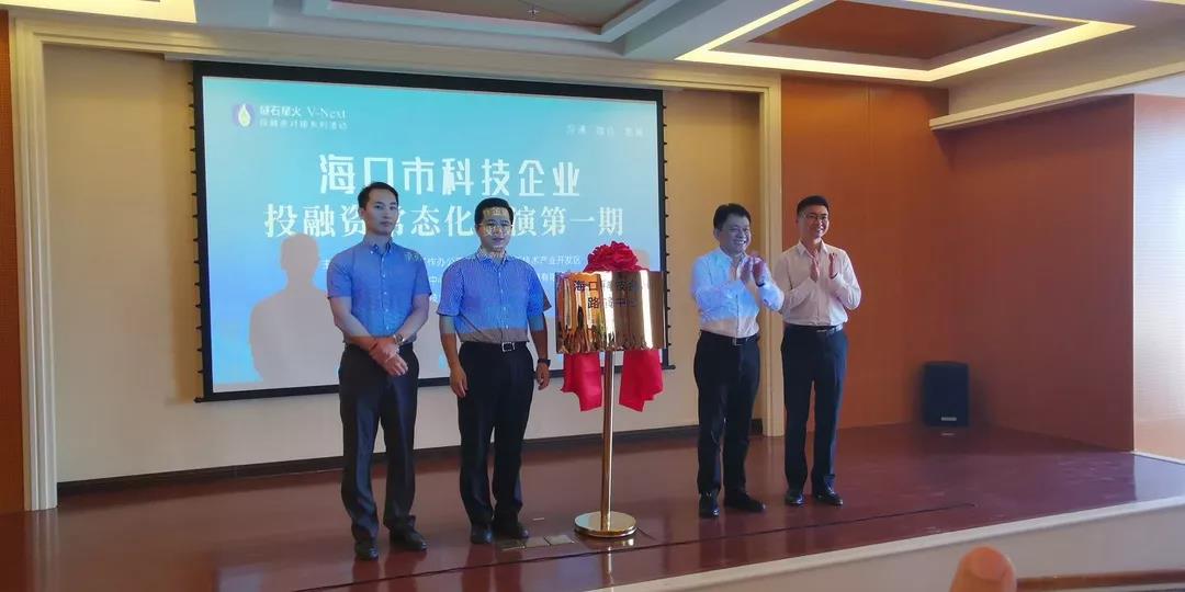路演開始前,海口國家高新技術產業開發區管委會主任林一民,海口市政府副秘書長、市金融辦副主任王品文,海南股交執行總經理程棟才,深圳證券信息有限公司科技金融事業部區域代表劉建偉一同為“海口科技金融路演中心”揭牌。