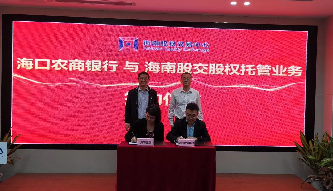 在現場領導、嘉賓的見證下,海南股交與海口農商銀行正式簽署銀行股權登記托管協議,海口農商行成為今年7月中國銀保監會發布《商業銀行股權托管辦法》以來,率先在海南區域性股權交易市場運營機構成功托管股權的非上市商業銀行,這對我省商業銀行股權托管工作極具示范意義。