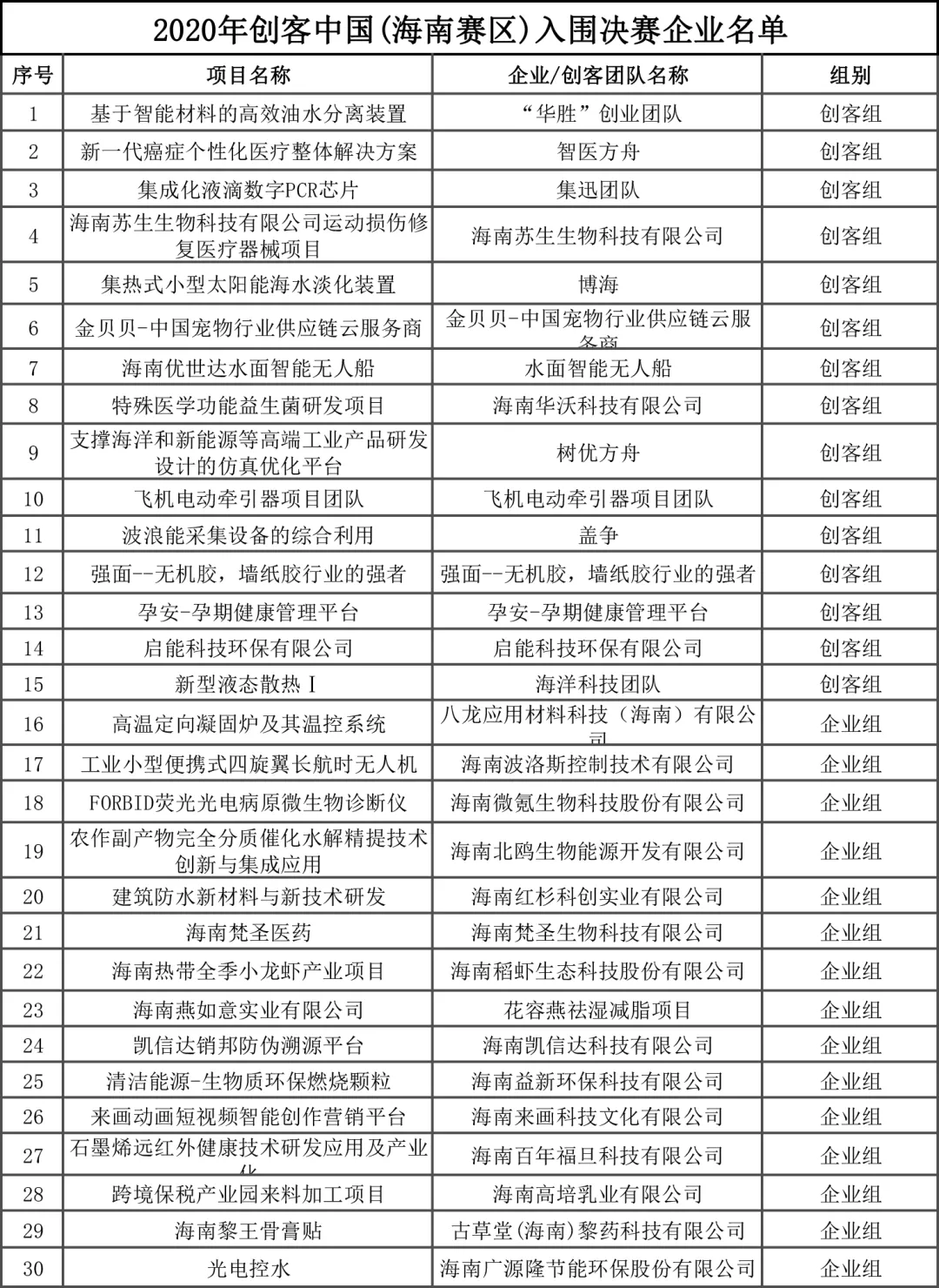 現將入圍的企業組和創客組項目名單公示如下(排名不分先后)