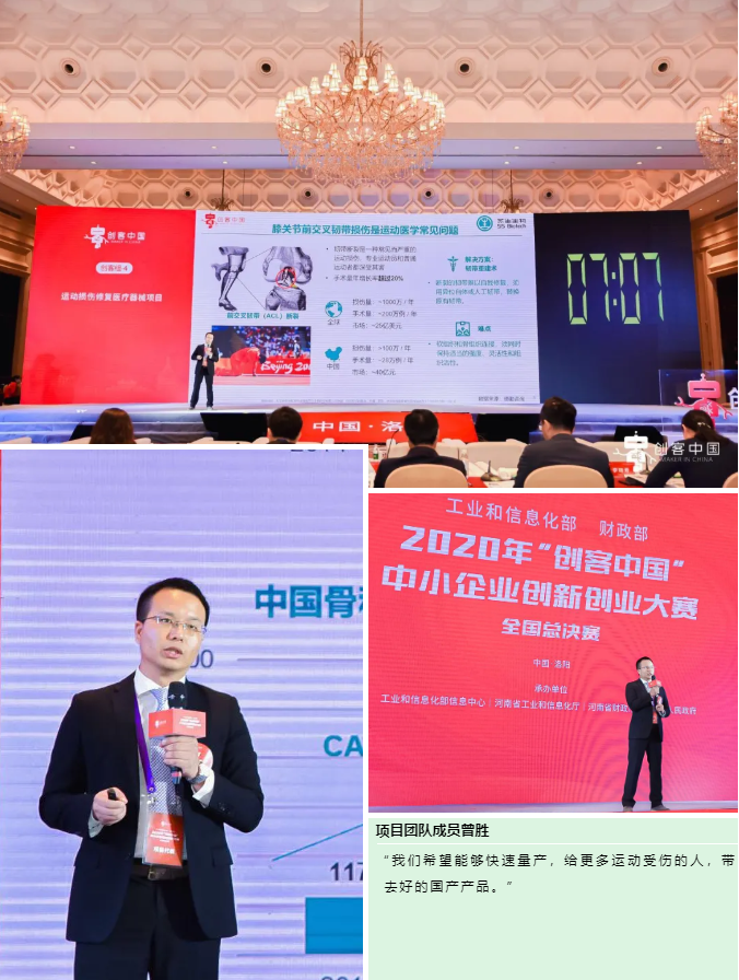 近日,由工業(yè)和信息化部、財政部、河南省人民政府主辦的2020年“創(chuàng)客中國”中小企業(yè)創(chuàng)新創(chuàng)業(yè)大賽全國總決賽在河南省洛陽市舉辦。代表海南出賽的海南蘇生生物科技有限公司的“運動損傷修復醫(yī)療器械”項目從全國25388個參賽項目中脫穎而出并入選總決賽,最終獲得總決賽創(chuàng)客組二等獎、生物醫(yī)藥類項目第一,為海南省企業(yè)參與創(chuàng)客中國大賽歷史最好成績。海南省工業(yè)和信息化廳、海南省財政廳榮獲2020年“創(chuàng)客中國”大賽優(yōu)秀組織單位,海南股權交易中心榮獲優(yōu)秀對接服務單位。