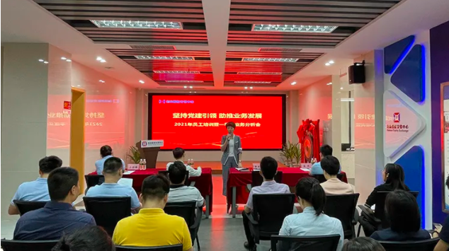 2021年是中國共產黨成立100周年,是“十四五”規劃開局之年。為進一步發揮黨建引領作用,推動公司各項業務發展,更好的服務我省中小微企業。3月31日,海南股交召開“堅持黨建引領 助推業務發展”2021年員工培訓暨一季度業務分析會,總結分析一季度經營情況,安排部署下階段工作任務,并就如何提升業務拓展能力進行了專題培訓。海南股交班子成員及全體員工參加會議,會議由副總經理兼財務總監唐玉萍主持。