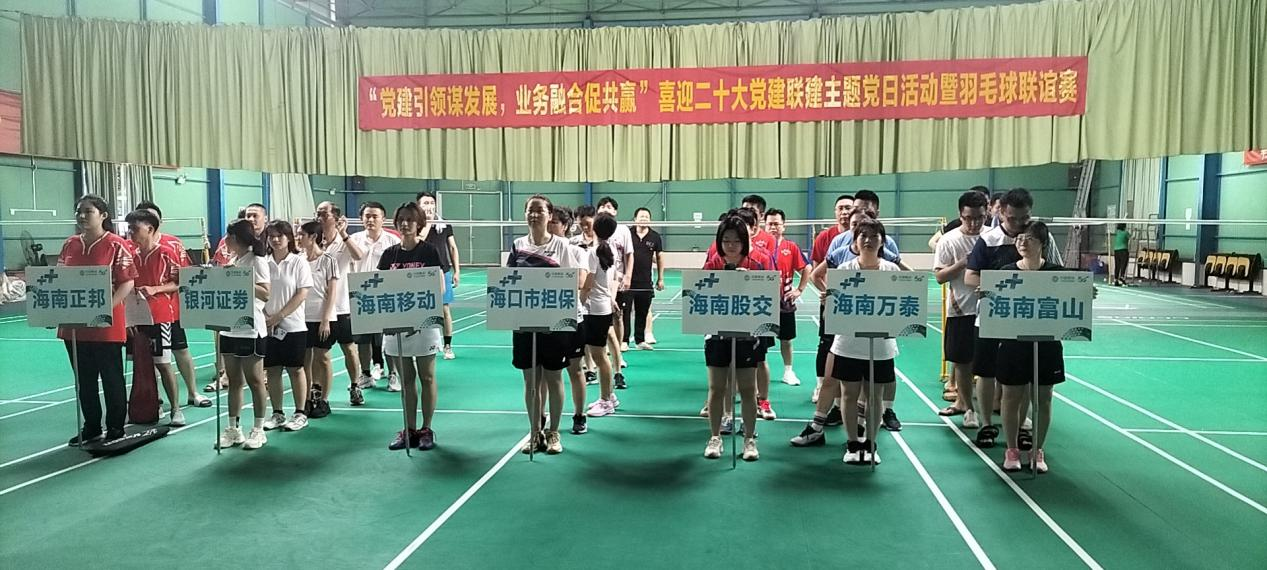 為進(jìn)一步促進(jìn)中小微企業(yè)間的互動與交流,充分發(fā)揮黨建引領(lǐng)作用,以黨建活動為橋梁,促進(jìn)各單位間業(yè)務(wù)發(fā)展融合,近日,海南股交聯(lián)合中國移動海南分公司舉辦“黨建引領(lǐng)謀發(fā)展,業(yè)務(wù)融合促共贏”喜迎二十大黨建聯(lián)建主題黨日活動暨羽毛球聯(lián)誼賽活動。