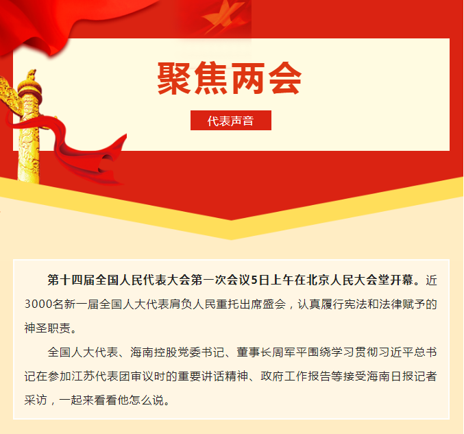 全國人大代表、海南控股黨委書記、董事長周軍平圍繞學(xué)習(xí)貫徹習(xí)近平總書記在參加江蘇代表團(tuán)審議時(shí)的重要講話精神、政府工作報(bào)告等接受海南日?qǐng)?bào)記者采訪,一起來看看他怎么說。
