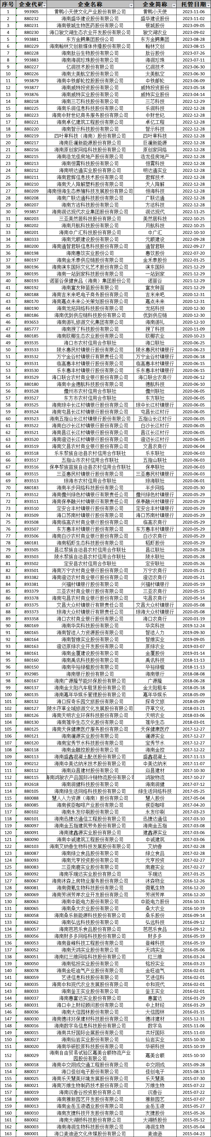 海南股權(quán)交易中心有限責(zé)任公司 股權(quán)登記托管企業(yè)名單公示公告