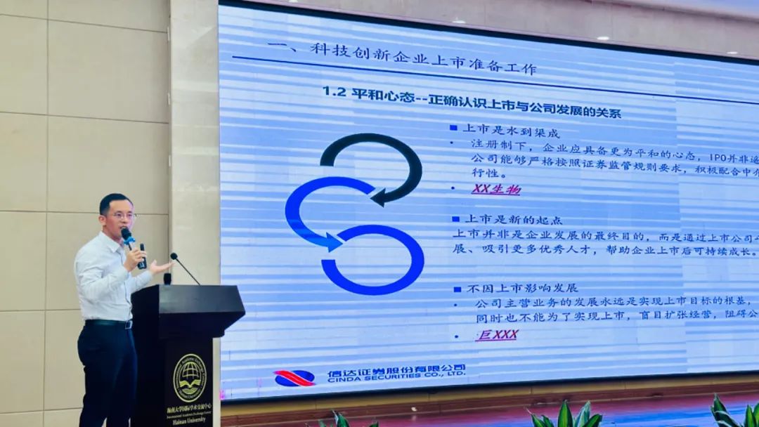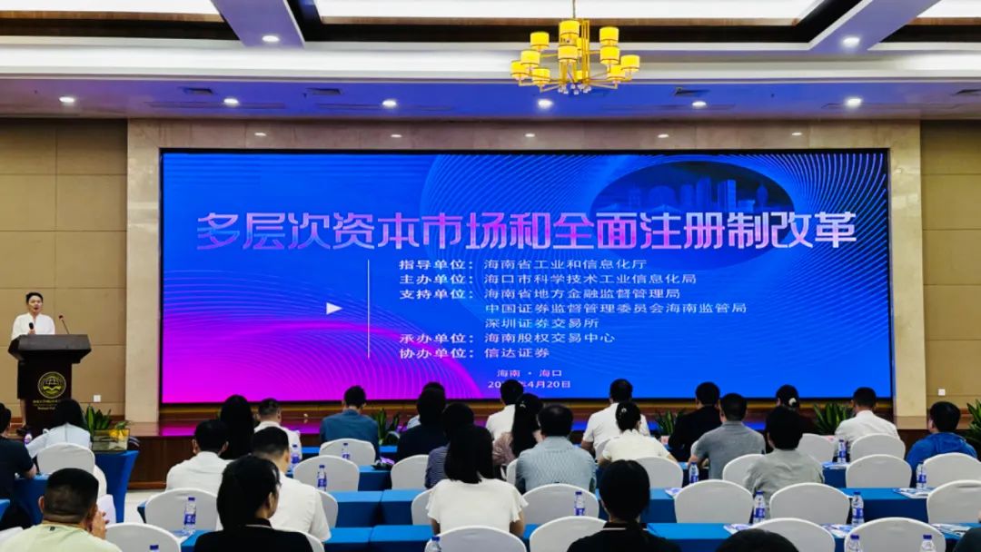 為幫助海口企業(yè)掌握最新政策形勢(shì),助力企業(yè)搶抓機(jī)遇、借助多層次資本市場(chǎng)實(shí)現(xiàn)高質(zhì)量發(fā)展,4月20日,由海口市科工信局主辦、海南股權(quán)交易中心承辦、信達(dá)證券協(xié)辦的“多層次資本市場(chǎng)和全面注冊(cè)制改革”專題培訓(xùn)活動(dòng)在海南大學(xué)國(guó)際學(xué)術(shù)交流中心舉辦,活動(dòng)得到了海南省金融監(jiān)管局、海南證監(jiān)局、深圳證券交易所的支持,海口市中小企業(yè)代表近70人參加本次培訓(xùn)活動(dòng)。