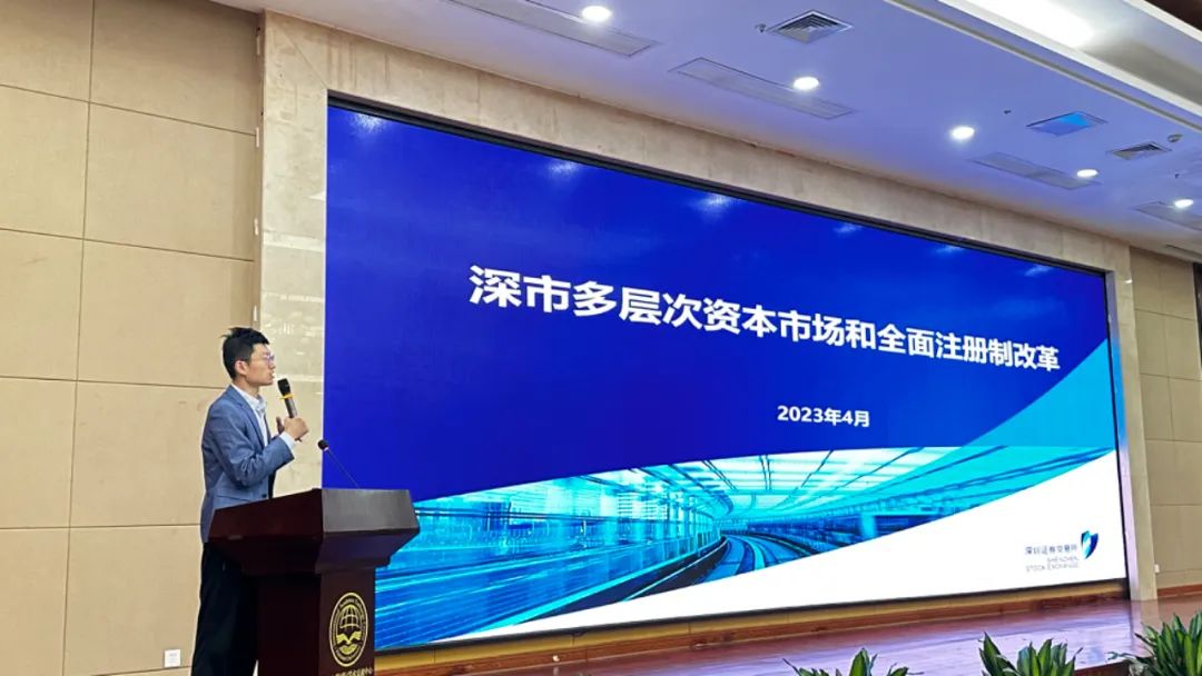 深圳證券交易所發(fā)展部華南區(qū)副主任 胡月明進(jìn)行《深市多層次資本市場(chǎng)和全面注冊(cè)制改革》主題宣講