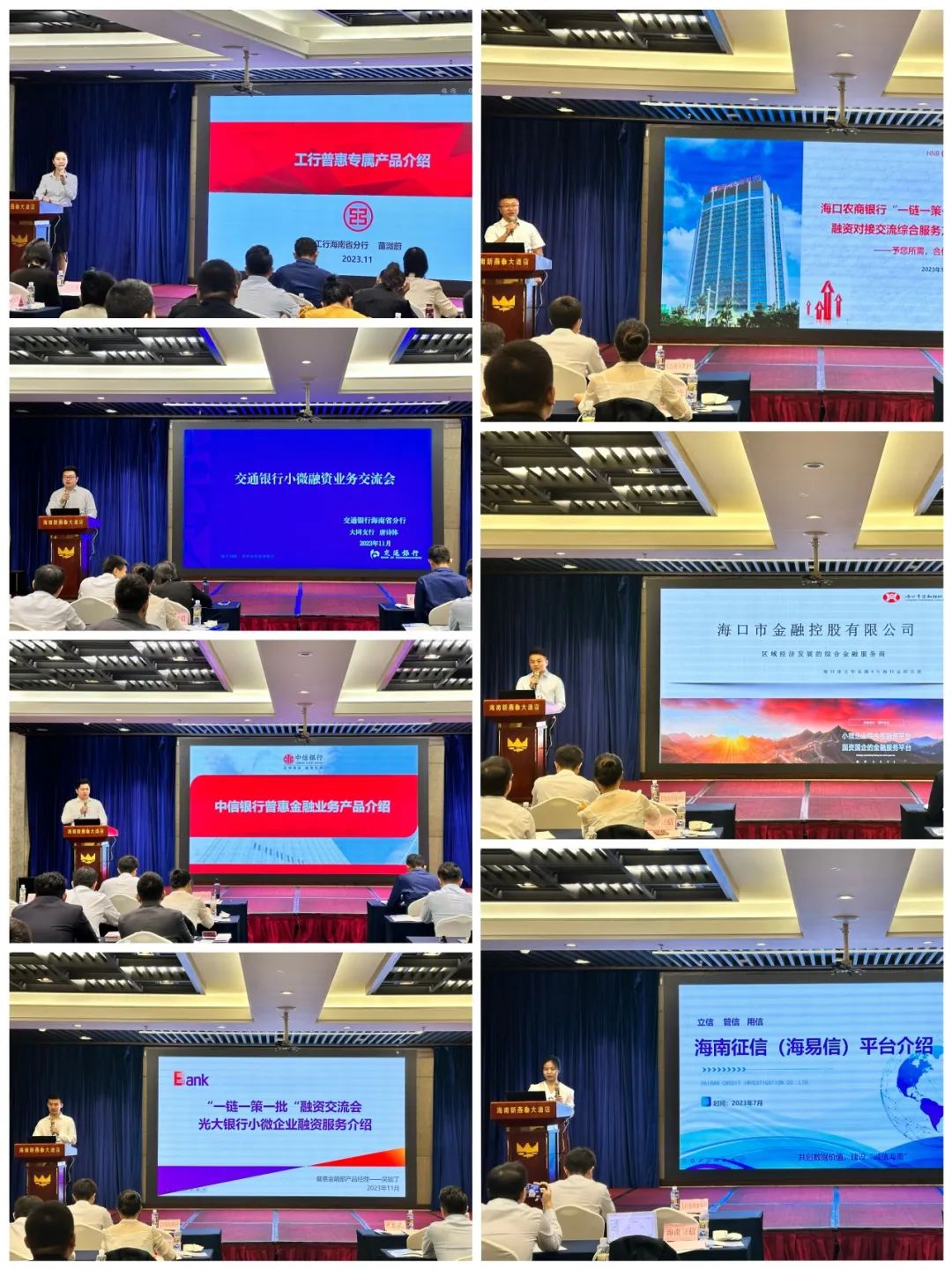 隨后,中國工商銀行、交通銀行、中信銀行、光大銀行、海南省農信社、海口市融資擔保、海南征信等金融機構相關人員依次分享了各自目前最新的融資產品及相關申請條件,并圍繞企業實際融資需求,進行了有針對性的講解。