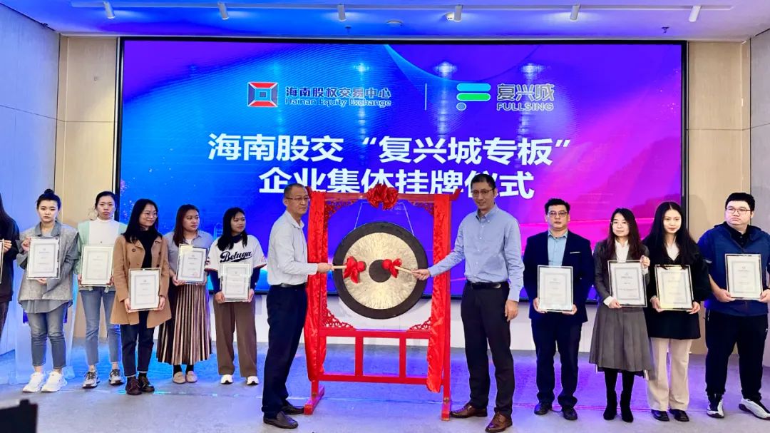 隨著鄧銳、羅洋、吳杰、周博共同按下啟動鍵,海南股交“復興城專板”正式啟動。隨后,來自互聯(lián)網(wǎng)、綠色能源、電子商務、教育等領域的20家復興城入駐企業(yè)集體上臺鳴鑼,集中登陸海南股交“復興城專板”。