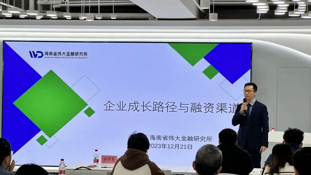 12月21日,由海南省工信廳主辦、海南股交承辦的“企業成長路徑與融資渠道專題培訓”在海口順利舉行。本次培訓邀請海南省緯大金融研究所副所長孫興亮向參會企業代表做融資專題分享。