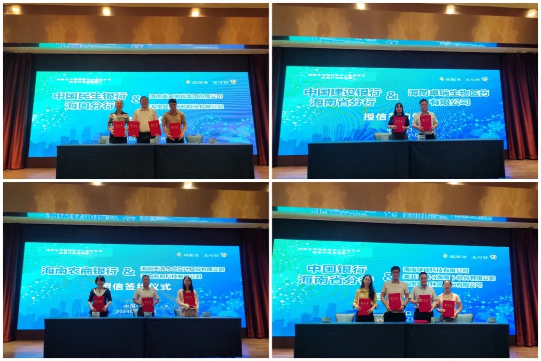 現(xiàn)場舉行了集體授信簽約,海南美亞電纜集團有限公司、海南皇隆制藥股份有限公司、海南卓瑞生物醫(yī)藥有限公司等8家企業(yè)與4家銀行簽訂了授信協(xié)議,成功獲得5900萬元授信額度。主辦方還為企業(yè)發(fā)放了《海南銀行業(yè)科技信貸產(chǎn)品匯編》,讓企業(yè)深入了解科技信貸產(chǎn)品特色,準入條件,貸款金額、期限、利率擔保要求等,進一步拓寬融資路徑。此外,現(xiàn)場還收集了34家企業(yè)融資需求15350萬元。