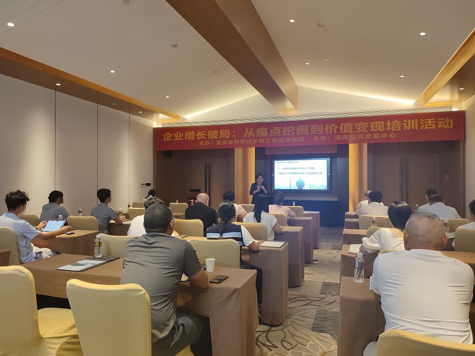 為助力本地中小企業應對市場挑戰,突破增長瓶頸,10月14日,由定安縣科學技術和工業信息化局主辦、海南股權交易中心承辦的“企業增長破局:從痛點挖掘到價值變現”專題培訓活動,在定安成功舉辦。本次活動吸引了定安縣眾多中小企業負責人及管理者參與。